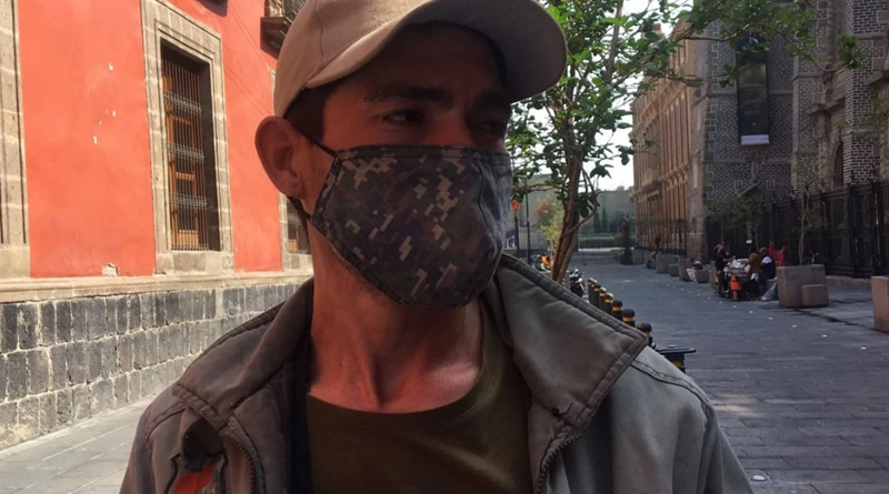 Sentado en una banca de concreto, frente al acceso de Moneda 1, González Quiñonez pide una audiencia directa con el Jefe del Ejecutivo, pues ninguno de sus problemas se ha solucionado desde hace más de dos meses que irrumpió en la mañanera.